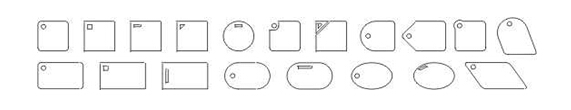 薄膜開關(guān)按鍵的各種形狀:鍵體外形與大小的設(shè)計(jì),應(yīng)從整個(gè)面板的大小及按鍵數(shù)量的多少來(lái)考慮。按鍵太小,操作比較費(fèi)力;按鍵太大,則影響美觀,且不宜按準(zhǔn)有效操作區(qū)域。另外,如果按鍵凸起,應(yīng)選擇帶圓角的矩形、圓形、橢圓、長(zhǎng)圓等外形比較圓滑的形狀;按鍵不凸起時(shí),則可選擇任意形狀,以略大于后部電路觸點(diǎn)為好。在鍵體上設(shè)置指示窗,一般情況下,以左上角為好。指示窗的形狀雖可自由設(shè)計(jì),但應(yīng)注意盡量與鍵體的外形輪廓相適應(yīng),譬如,帶圓角的鍵體,宜采用圓形指示窗,方角鍵體宜采用方形或長(zhǎng)方形指示窗,以增進(jìn)外觀的協(xié)調(diào)。在同一面板上各單元內(nèi)的指示窗位置及形狀應(yīng)趨于一致。常見鍵體外形與指示窗位置、形狀見下圖
